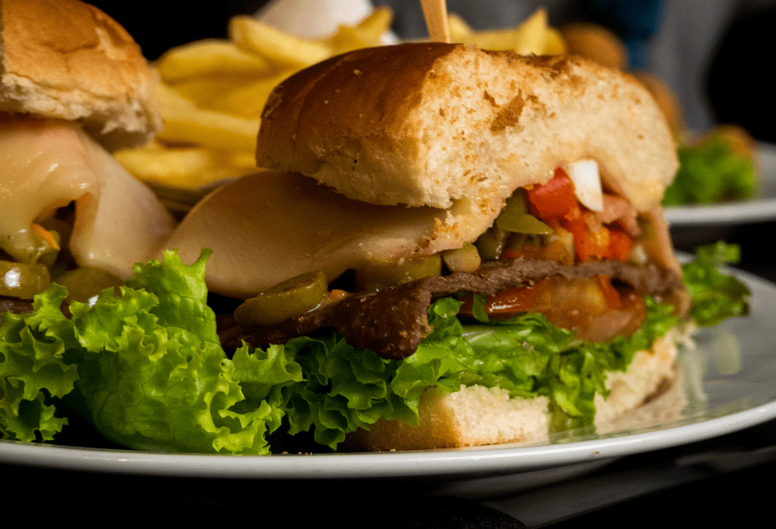• Chivitos: carne tierna, panes frescos, jamón, Panceta crocante, queso, tomate, lechuga y mayonesa